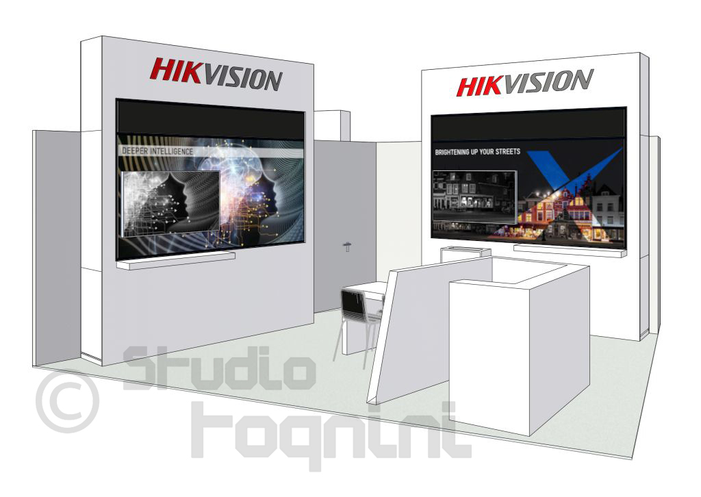A custom-built 30 m2 corner exhibit representing world-known Chinese supplier of video surveillance products and solutions.